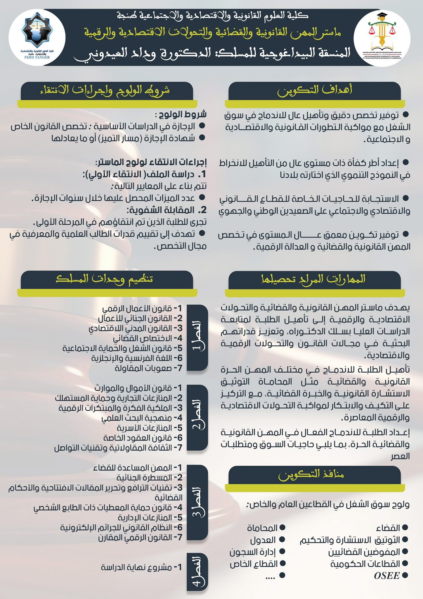 افاق واعدة تنتظر طلبة ماستر المهن القانونية والقضائية بطنجة